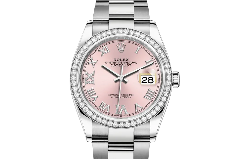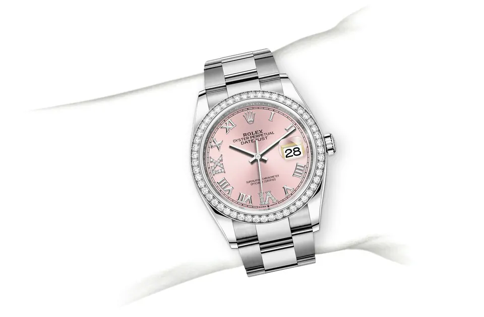 サンレイ仕上げは、オイスター パーペチュアルコレクションの多くのダイアルに繊細な光の反射をもたらす。これはダイアルの中心から外側に向かって溝を作る、熟練のブラッシング技術によるものだ。